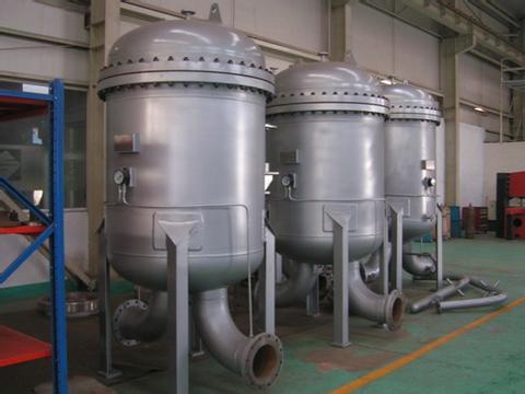 聚结器 液滴的尺寸及其到两种液体分界面必须沉降的距离显著地影响液滴的沉降过程。对(分离器)内件的巧妙选择可以改变这些因素加快分离。 利用多层水平平行板,可以在同一容器中形成许多分界面,从而显著地缩小分离容器的可以在同一容器中形成许多分界面,从而显著地缩小分离容器的尺寸。用此技术可以有效地对50-100微米的分散相实现分离,在可能有固体或焦油状液体存在时,是设备设计的良好选择。