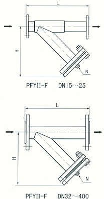 (2)Y型铸造同径法兰连接式(PFYI—F型)(DNl5—250,PN≤5.0MPa)