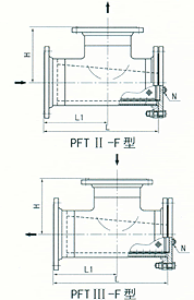 (7)T型法兰连接反折流式过滤器(PFT III—F型)(DN50~400,PN≤5.OMPa)